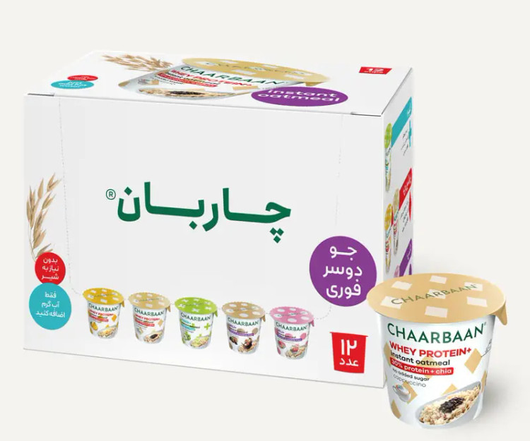 بسته 12 عددی اوتمیل لیوانی با پروتئین و چیا با طعم کاپوچینو چاربان